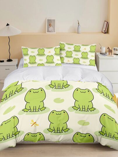 卡通青蛙印花羽絨被套組無填充物 - 彩色 - 查看 1