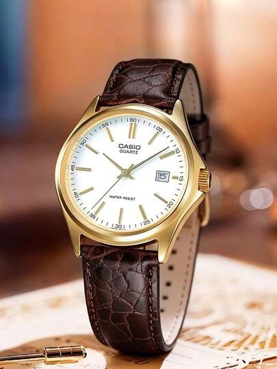 Casio 女士腕表,正装系列,时尚简约休闲商务石英表,日期显示,防水,真皮表带,韩日风格,白色表盘,型号 MTP-1183Q-7A - 白色 - 查看 1