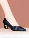 女士时尚尖头粗跟高跟鞋,带蝴蝶结和花朵装饰,白色/黑色/银色