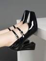 女士厚底高跟踝带浅口鞋,粗跟单扣鞋,粉色、杏色、裸色、酒红色、黑色、白色、红色、银色、金色、棕色,时尚高跟鞋