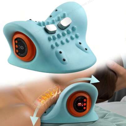 成人颈椎按摩器,颈椎修复牵引便携式颈头穴位按摩枕 - 淺藍色 - 查看 1
