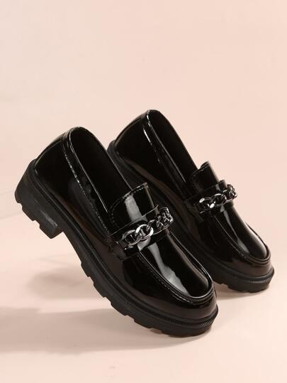 鏈條裝飾一腳蹬厚底樂福鞋 - 黑色 - 查看 1
