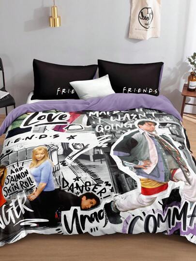 FRIENDS X SHEIN 人物与字母印花戏剧静态床上用品套装、礼物 - 彩色 - 查看 4