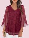 CheersLife 女士3/4袖休閒V領襯衫雙層網眼束腰上衣