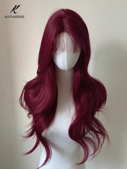时尚长款波浪卷合成U型蕾丝假发,女士款 - 可调节玫瑰网帽,完美适用于角色扮演和派对,26英寸,绿色和粉色派对款可选(不含配件) - 酒紅色 - 查看 1