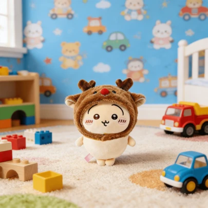 千川系列小型站立毛绒玩偶,圣诞驯鹿头饰兔兔毛绒玩偶,生日及节日礼物 - 黃棕色 - 查看 10