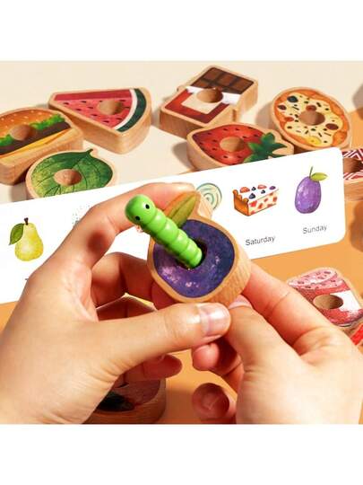 儿童早教串珠游戏,毛毛虫串珠游戏,专注力训练,精细动作技能发展,逻辑思维训练,儿童玩具,精彩圣诞礼物 - 彩色 - 查看 7