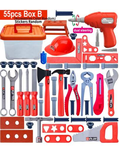 儿童工具箱玩具套装男孩仿真修理电钻工程维修盒宝宝螺丝工具圣诞礼物 - 彩色 - 查看 10