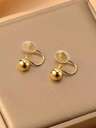 1对时尚新款铜球耳环,女士夹式耳环,高端优雅闪亮,适合日常佩戴和节日礼物