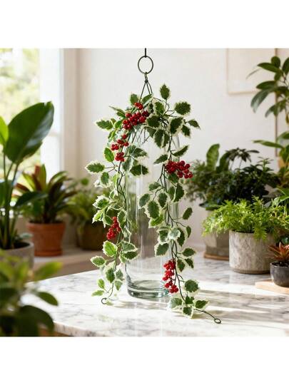 Christmas Garland Artificial Holly Leaves Garland Faux Greenery Vine For Table Mantle Fireplace Home Holiday Party Decor