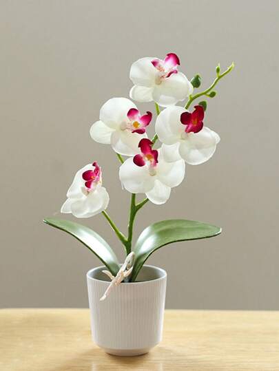圣诞节、万圣节、情人节、节庆派对生日装饰。1件五盆蝴蝶兰盆栽仿真花摆件蝴蝶兰盆景办公室装饰仿真盆栽户外花园庭院绿植摆件 - 白色 - 查看 1