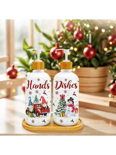 圣诞皂液器卡车雪人皂液器带泵和托盘可再填充洗手液收纳盒套装适用于圣诞节家居厨房浴室台面装饰 - 彩色 - 查看 10
