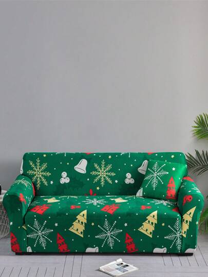 聖誕主題彈性莫代爾條紋沙發套+42*42cm枕套套件,全包覆,防污,每款1入 - 綠色 - 查看 9