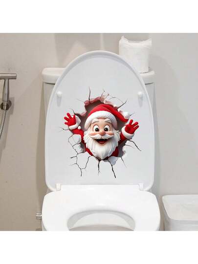 圣诞节马桶贴纸 快乐突破 圣诞老人马桶盖贴纸 马桶座贴纸 适用于浴室、厕所、厨房 - 彩色 - 查看 1