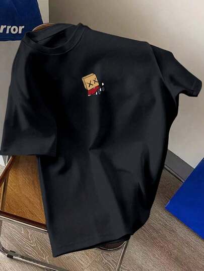 Claim Dot 男士夏季休閒短袖卡通印花T恤 - 黑色 - 查看 1