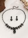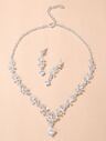 3入組/套金色合金葉形和鑽石裝飾耳環項鍊套裝,女士宴會珠寶