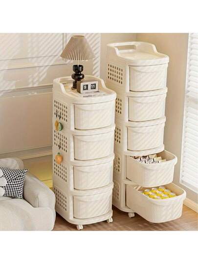 经典款塑料带轮收纳整理架 - 多功能长方形床底推车,可收纳衣物、零食、玩具 - 不防水,适用于卧室、客厅、厨房 - 1个装 - 彩色 - 查看 1