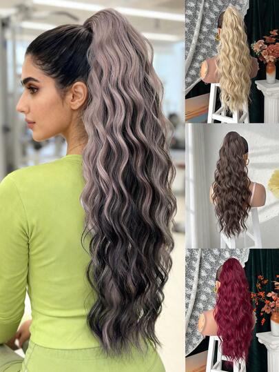 爪形马尾假发,棕色多色渐变,24英寸水波纹耐热纤维合成马尾假发,适合女性圣诞节、万圣节、音乐节派对和日常使用。 - 拼色 - 查看 19