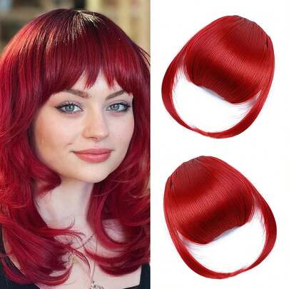 Clip-In Hair Bangs Extensions,With Invisible Clips Airy French And Air Bangs Thin Hair With Temple Coverage For Women Curved Bangs Easy To Style For Daily Wear (Red, French Bangs),38547315