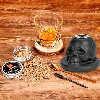 鸡尾酒烟熏套装,Anmyox威士忌烟熏器套装(带礼盒),波本威士忌男士套装,骷髅复古烟熏套装,适合送给朋友、丈夫、父亲(不含丁烷)
