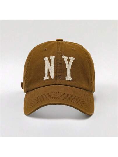 咖啡色 Ny 字母刺繡棒球帽,韓版頭圍頭形凸顯遮陽帽,戶外運動帽子