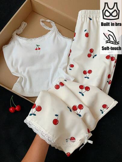 Comfortcana 两件套女士休闲蕾丝边吊带背心和蓝白条纹裤,返校季 - 彩色 - 查看 1