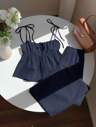 Comfortcana 2 件套女式圆领插肩袖拼色条纹蝴蝶结装饰时尚运动衫套装