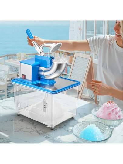 6. Commercial Ice Crusher 661LBS/H, 350W Electric Snow Cone Machine With 4 Blades, 2000RPM Stainless Steel Shaved Ice Machine With 11 Gal Crushed-Ice Box, For Family Restaurants Bars, Blue