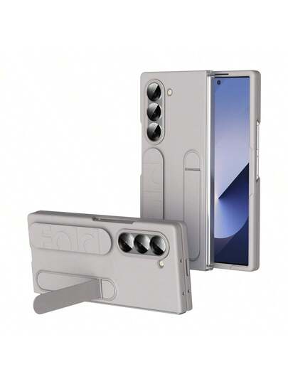 适用于三星 Galaxy Z Fold3/Fold4/Fold5/Fold6/Fold7,竖款腕带保护壳,手机保护壳,隐形支架,可伸缩腕带,金属镜头保护环,时尚个性化高端奢华防摔保护套 - 卡其色 - 查看 4