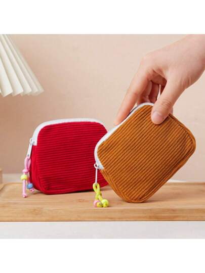 灯芯绒化妆品收纳袋,韩式零钱包卫生巾收纳袋,便携袋 - 彩色 - 查看 10