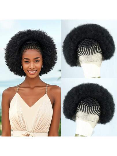 玉米辫蓬松假发,13x6英寸高清蕾丝前假发,带婴儿发,编织合成蕾丝前假发,适合女性,打造自然发型,适合日常、派对等场合。 - 黑色 - 查看 13