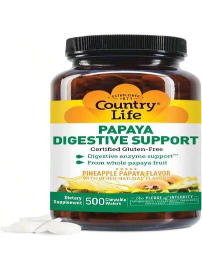 Country Life Chewable Papaya Enzymes For Digestion Support - Natural Pineapple &Amp; Papaya Flavor, Assists With Nutrient Absorption, Contains Papain &Amp; Protease - 200 And 500 Wafers Available