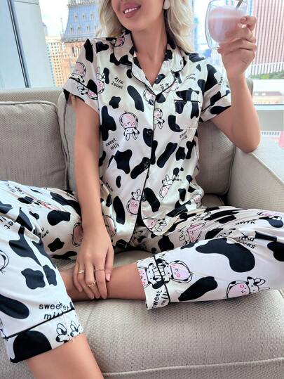 奶牛印花撞色滚边睡衣套装 / 睡衣套装 - 彩色 - 查看 1