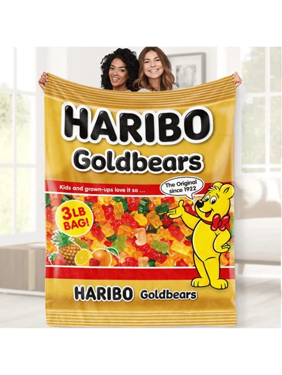舒适的四季法兰绒糖果主题毛毯 - 鲜艳、防过敏、舒适的毯子,适合卧室、客厅、露营和办公室午睡 - 具有彩色糖果印花图案和卡通熊,用途广泛 | 卡通主题毛毯 | 涤纶保暖 - 彩色 - 查看 1