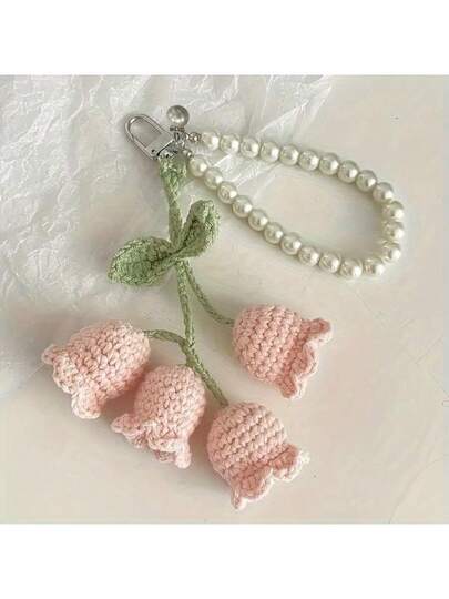 Creative Cute Girl Pearl Chain Yarn Crochet Orchid Flower Keychain Bag Decoration Buckle