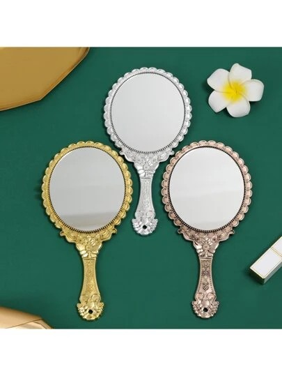 創意復古蕾絲手柄手持化妝鏡,便攜式手持鏡子,理想適用於媽媽,女朋友,,女士們化妝鏡,宿舍房間,旅行 - 玫瑰紅 - 查看 1