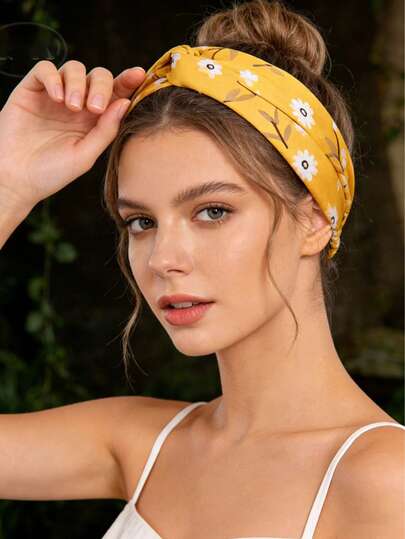 交叉印花发带,弹性透气缎面运动发带(女士款) - 彩色 - 查看 1