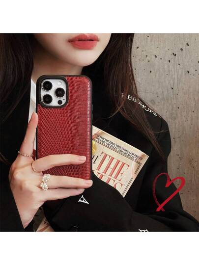 鱷魚紋皮革柔軟pu手機殼,適用於iphone 15 14 13 12 Pro Max防撞殼 - 紅色 - 查看 10