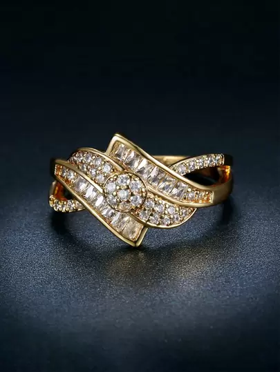 MONALLY 方晶鋯石裝飾開口戒指 - 金黃色 - 查看 1