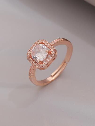 方晶鋯石裝飾戒指 - 玫瑰金 - 查看 1