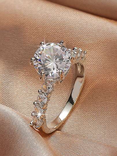 方晶鋯石裝飾戒指 - 銀色 - 查看 1