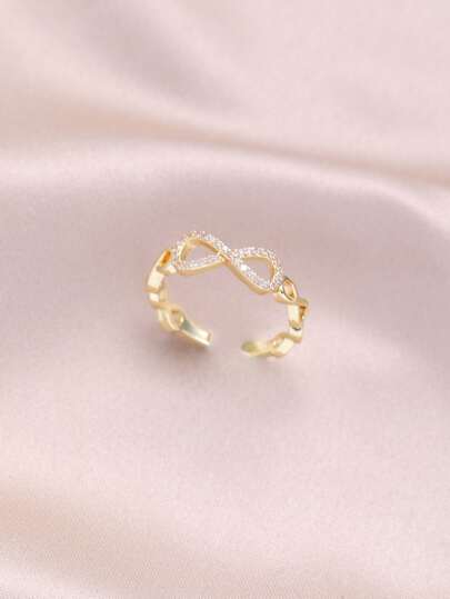 方晶鋯石無窮象徵裝飾開口戒指 - 金黃色 - 查看 1