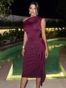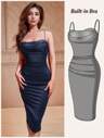 Curvysweet 优雅修身垂褶领口吊带中长连衣裙,内置胸罩,新年连衣裙