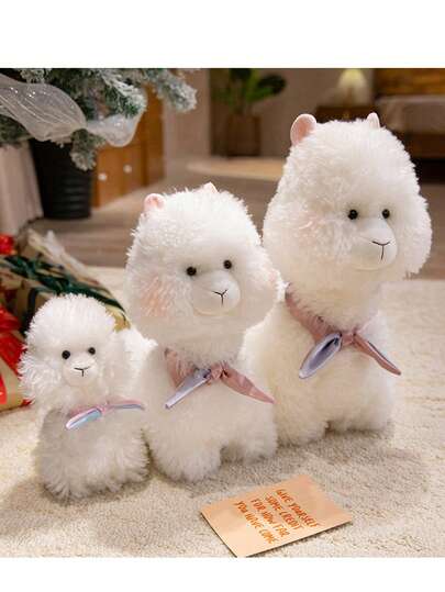 可爱羊驼毛绒玩具 - 可爱的毛绒羊驼,系着丝带,柔软舒适,是儿童生日礼物、房间装饰和情人节的理想选择 - 彩色 - 查看 12