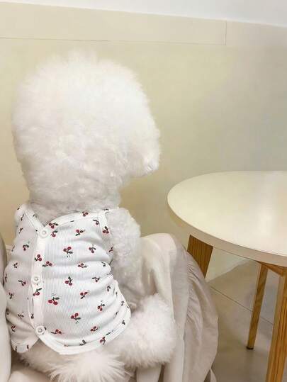 可爱樱桃印花狗狗背心 - 柔软弹力纽扣宠物背心,适合小型和中型犬猫,春夏轻薄透气服装 - 白色 - 查看 1