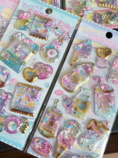 可爱金色边框闪亮糖果摇滚贴纸,儿童交换贴纸 - 彩色 - 查看 7