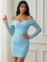 D&M 粉扑点缀的交叉露肩修身长袖连衣裙