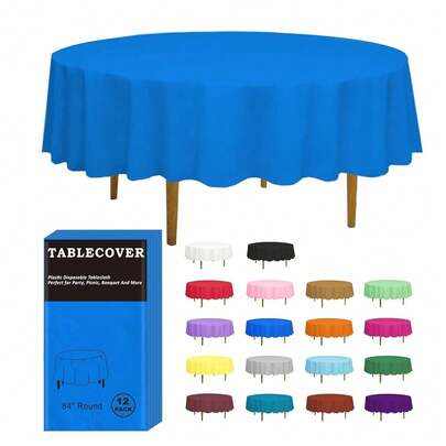 D&Z Plastic Tablecloth Disposable, 12 Pack Blue Table Cloth Individually Wrapped For Indoor&Outdoor, On-The-Go 84" Table Cover For Round Table Ideal For Party, Picnic, Birthday, Wedding And Dinner