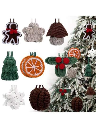 6. D16 Pcs Crochet Christmas Tree Ornaments Handmade Crochet Pine Cone Gingerbread Man Snowflake Mushroom Orange Slice Star Hanging Decorations For Xmas Winter Holiday Gifts Decorations