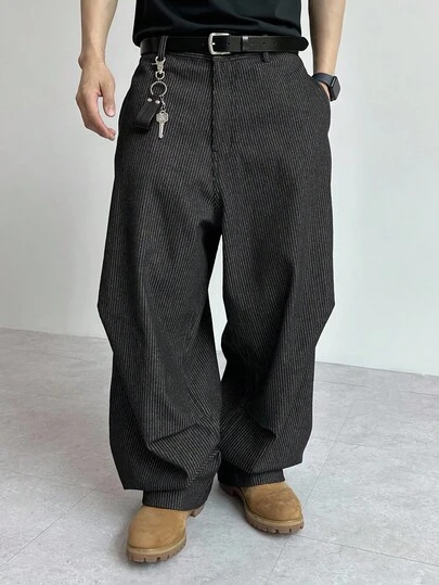 DAZY 秋季条纹可调节踝带宽松低腰男士牛仔裤 - 黑色 - 查看 1